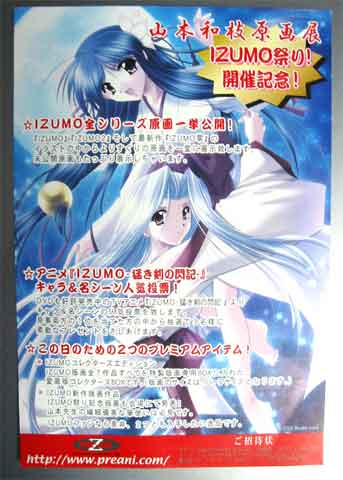 なんかきたーーーーー!![]() IZUMO祭り開催記念 山本和枝原画展 新作版画って・・・・・。 前回、ファイナルとか言ってなかったか??? しかし、残念。 つい先週秋葉まで行ってきたんで、またしばらく行く用事はありませんので。 |