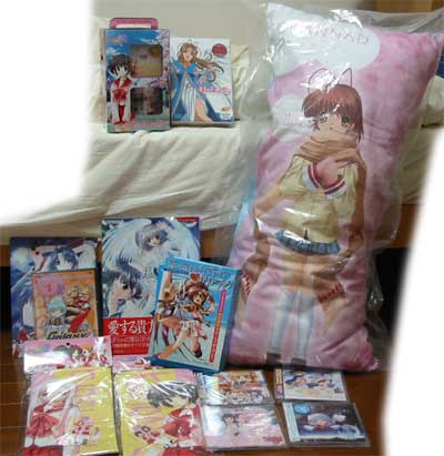 | 最近入手したもの。 (・・・・・こればっかだな、最近) ![]() CLANNAD抱き枕。 ToHeart2枕カバー×2。 ・・・・・・枕増えすぎ。 そもそもToHeart2やってないし。 |